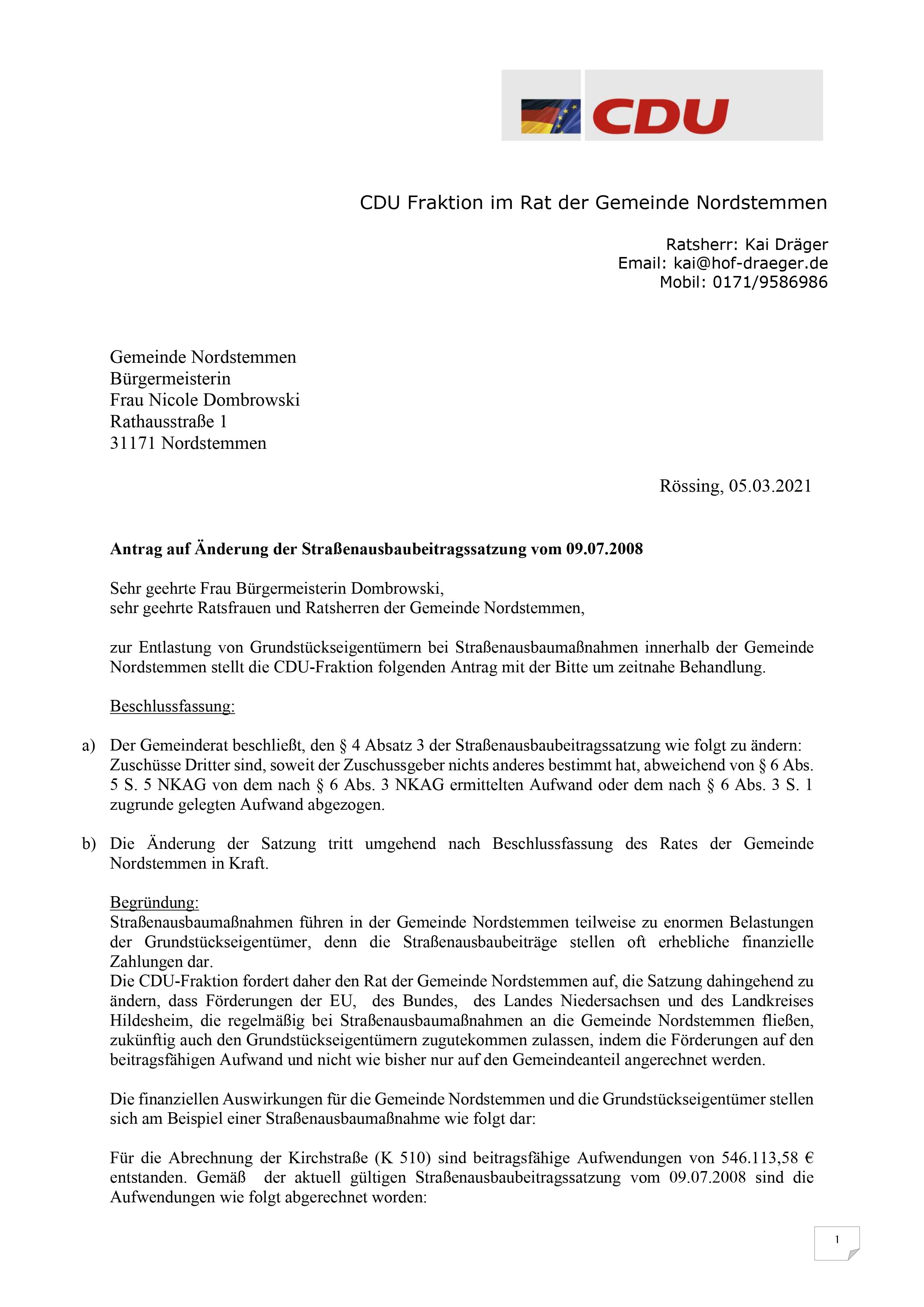 Antrag Straßenausbaubeiträge